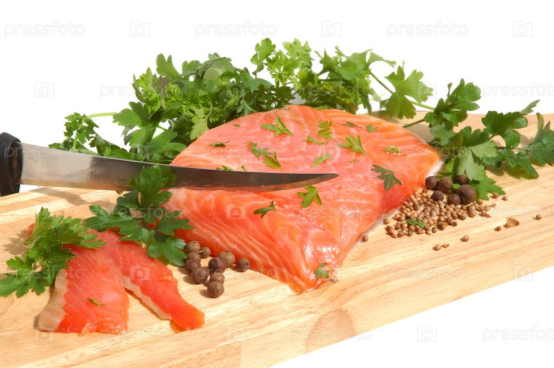 Сырое филе лосося на деревянной доске