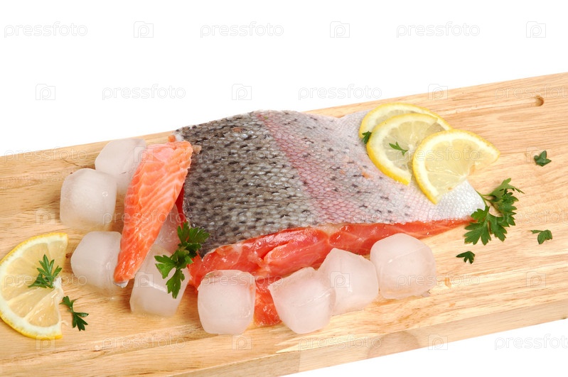 Сырое филе лосося на деревянной доске