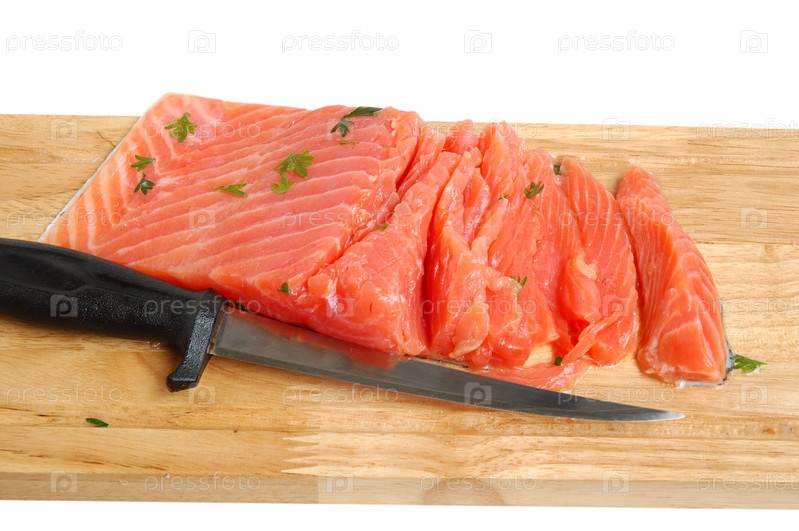 Сырое филе лосося на деревянной доске