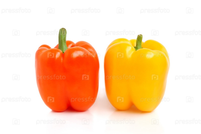 Оранжевый и желтый перцы на белом фоне