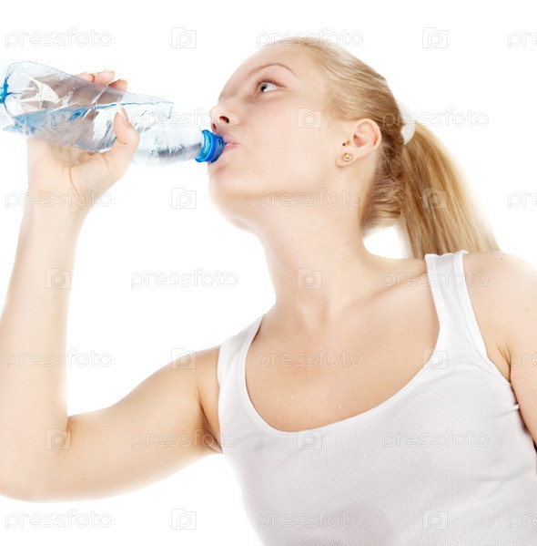 Девушка пьет воду из бутылки