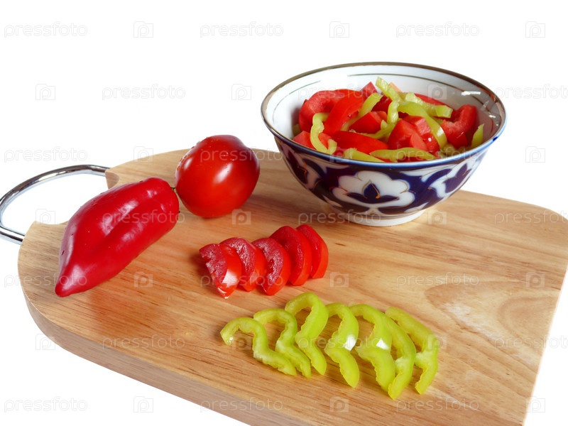 Нарезанный сладкий перец на разделочной доске