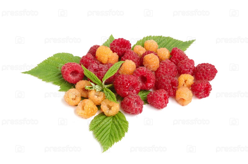 Ягоды с зелеными листьями на белом фоне