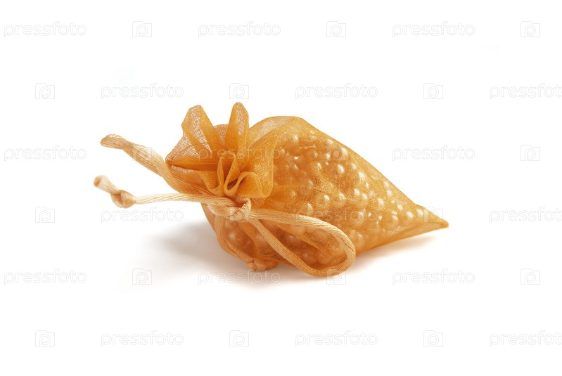 Подарочный мешочек из прозрачной золотистой ткани с жемчугом