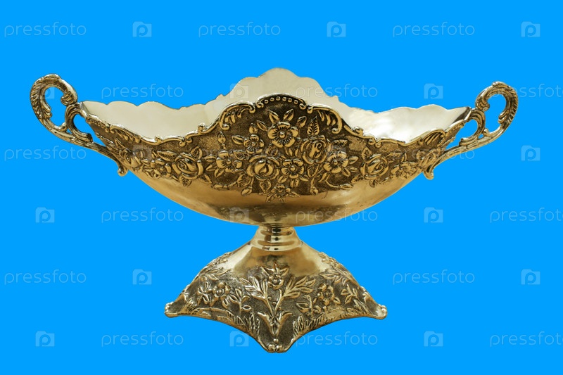 Золотая ваза на голубом фоне
