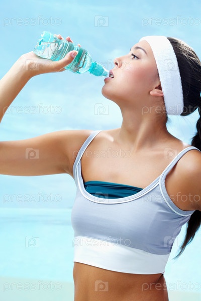 Спортсменка пьет воду