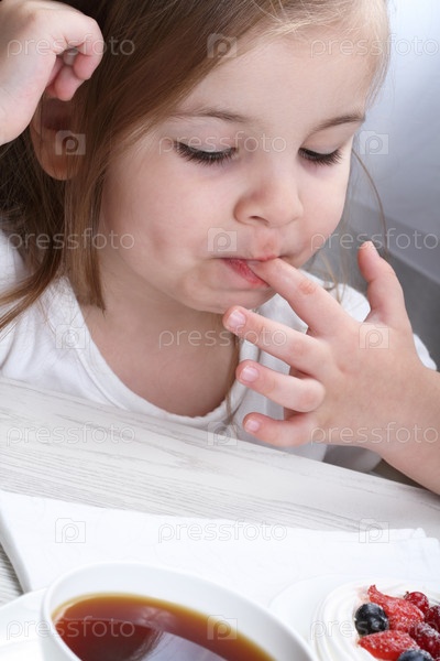 Маленькая девочка облизывает пальчик