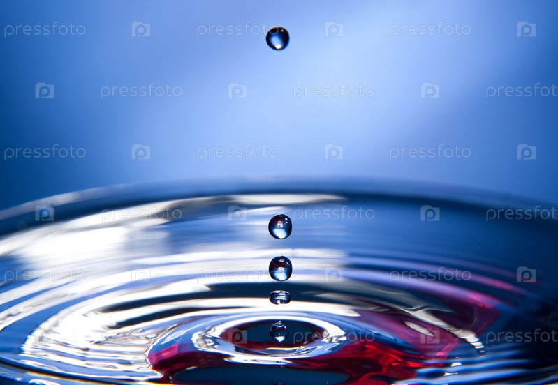 Падающие капли на голубом фоне