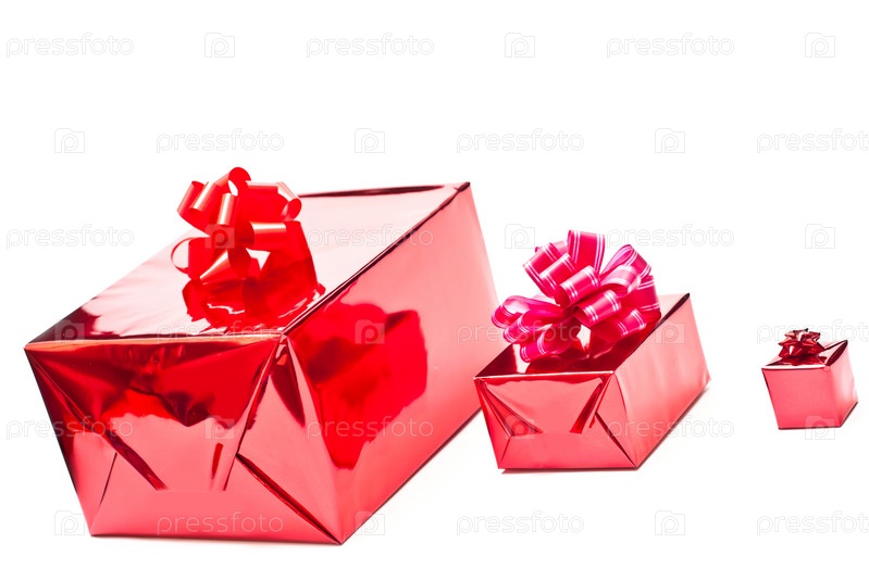 Красные рождественские подарки на белом фоне