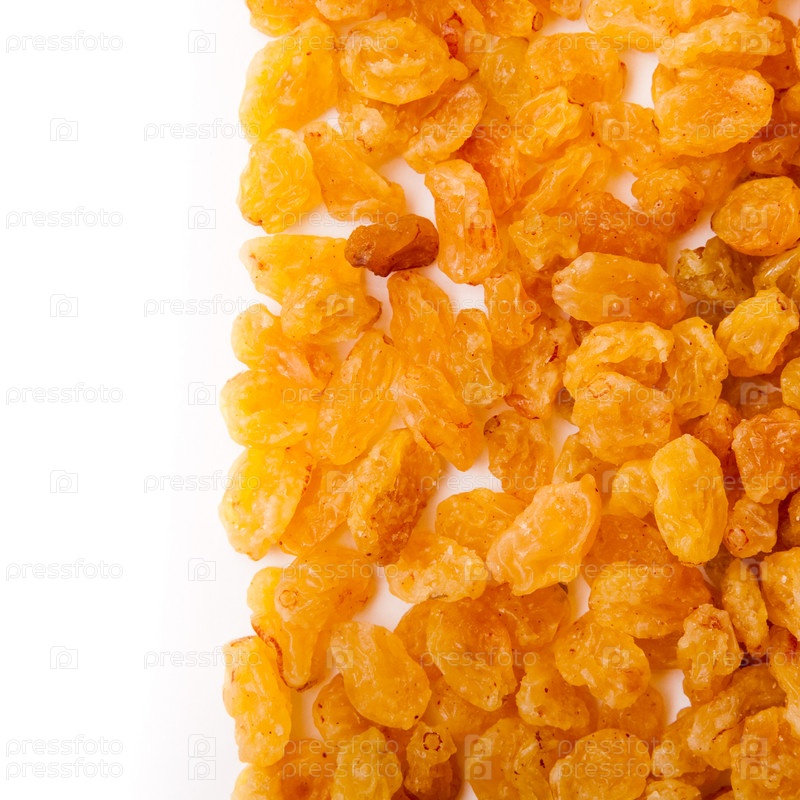 Желтый изюм (кишмиш) на белом фоне