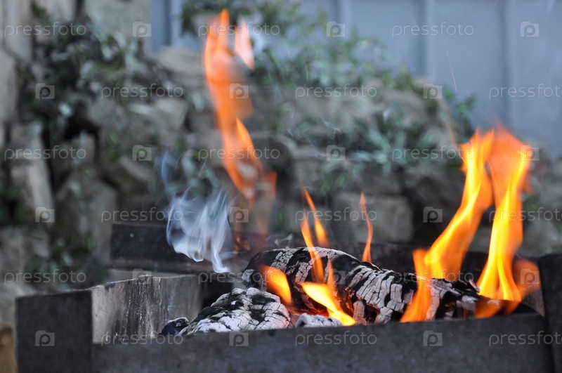 Горящие дрова в мангале