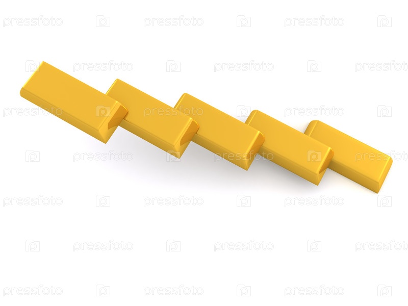 Лестница из золотых слитков на белом фоне