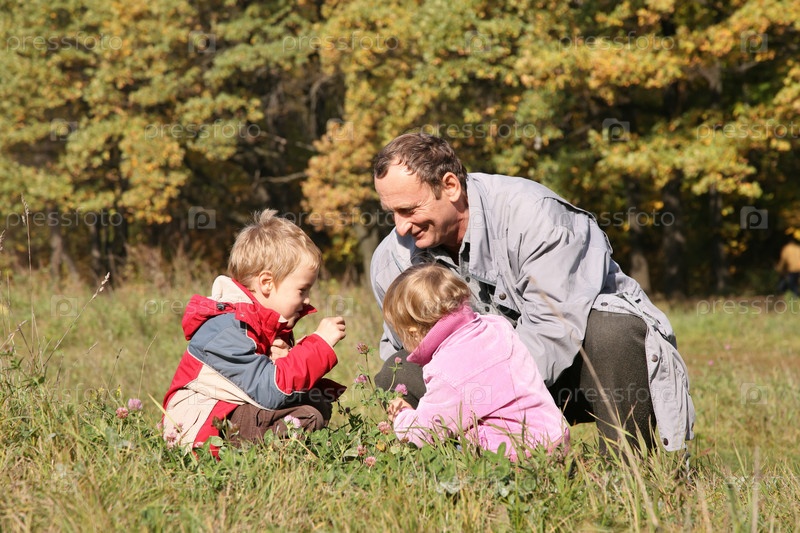Дедушка с внуком и внучкой
