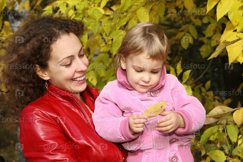 Мать и дочь в парке осенью