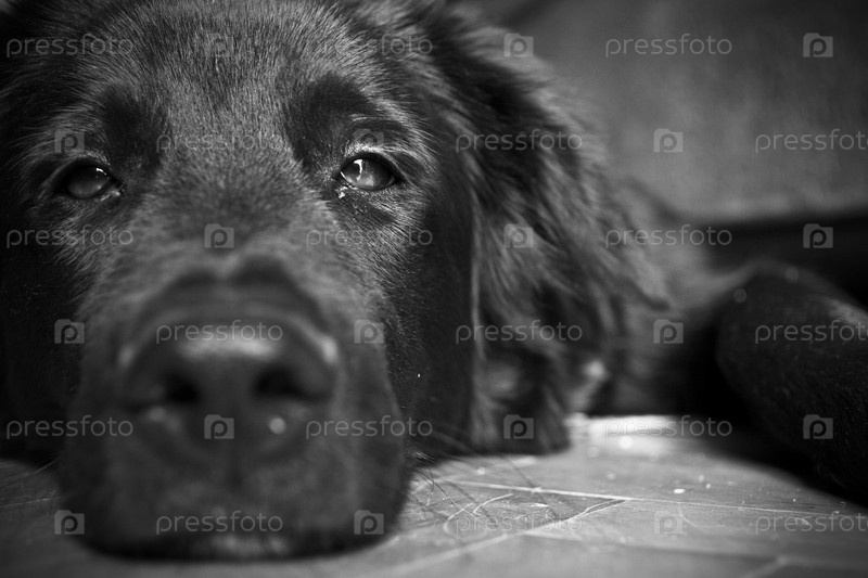 Морда собаки крупным планом в черно-белых тонах