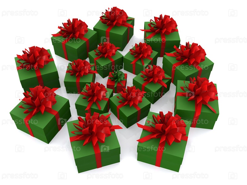 Трехмерные зеленые подарочные коробки на белом фоне