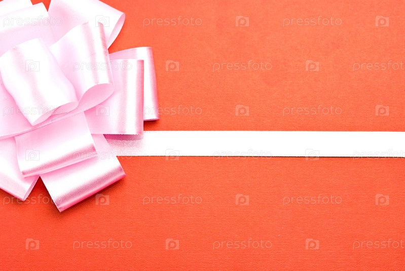 Розовый бант на красном фоне крупным планом