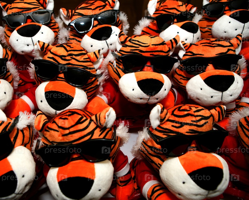множество мягких игрушек - тигров в черных очках