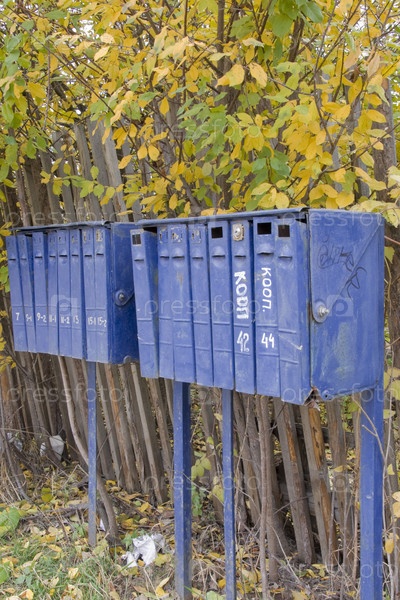 Старые почтовые ящики у сельского забора