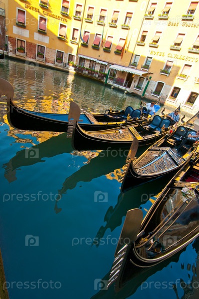 Венеция Италия. Гондолы на канале