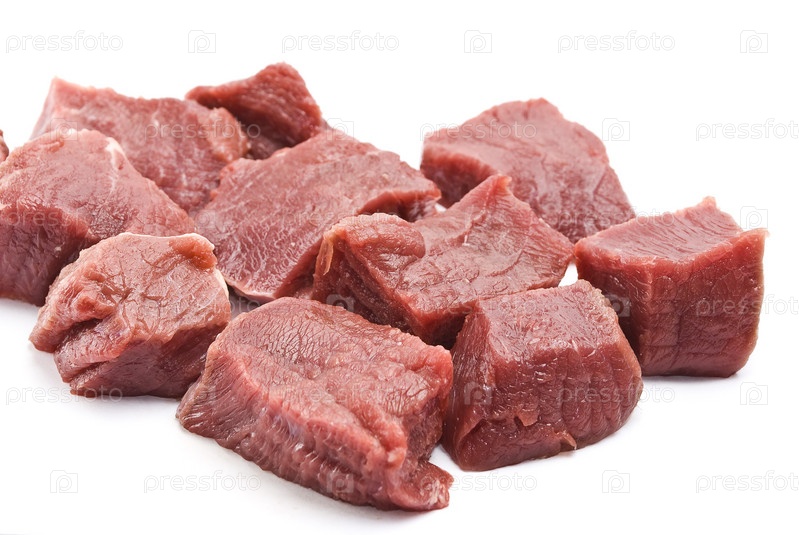 Нарезанные куски сырого мяса