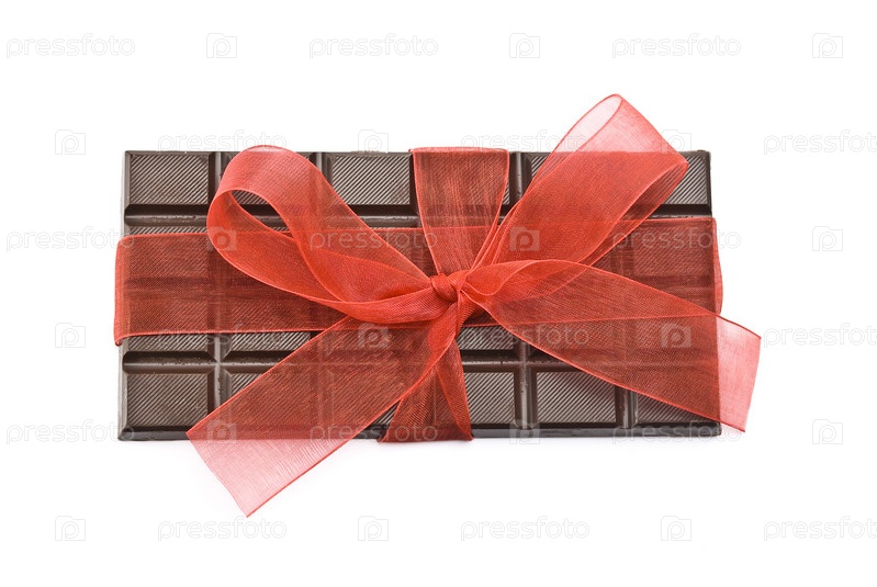 Плитка шоколада с красной ленточкой