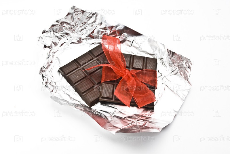 Плитки шоколада с красной ленточкой