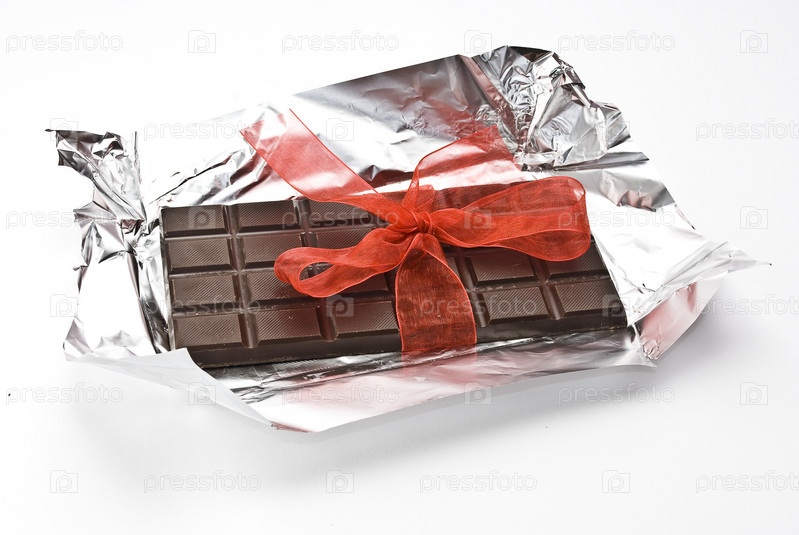 Плитка шоколада с красной ленточкой