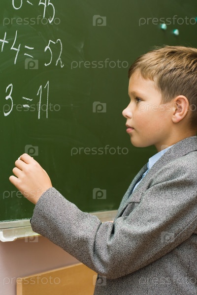 Школьник на уроке математики решает у доски