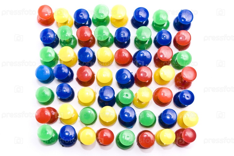 Канцелярские кнопки на белом фоне