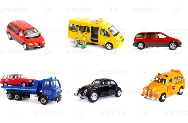 Игрушечные машинки на белом фоне