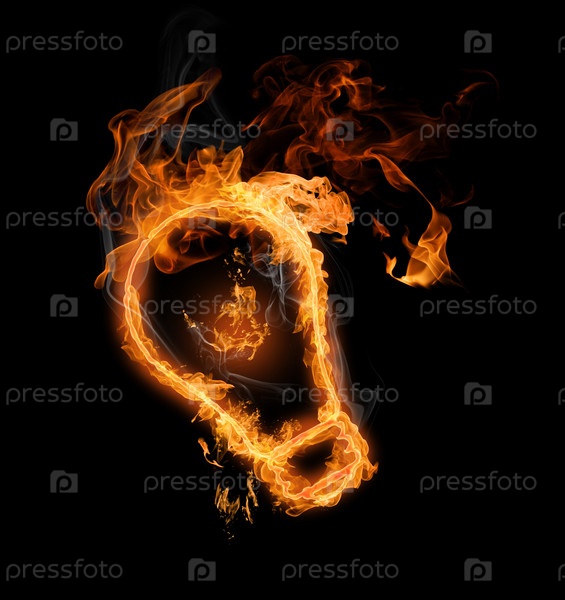 Яркий огненный символ на черном фоне