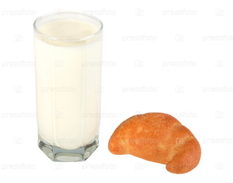 Молоко в стеклянном стакане и круассан