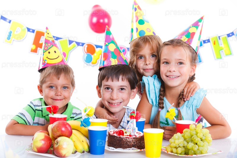 Дети с тортом в день рождения