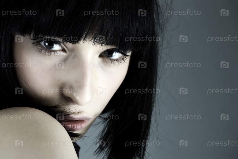 Лицо молодой симпатичной брюнетки крупным планом