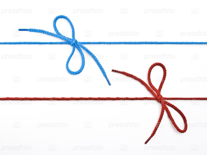 Синий и красный бантики на белом фоне
