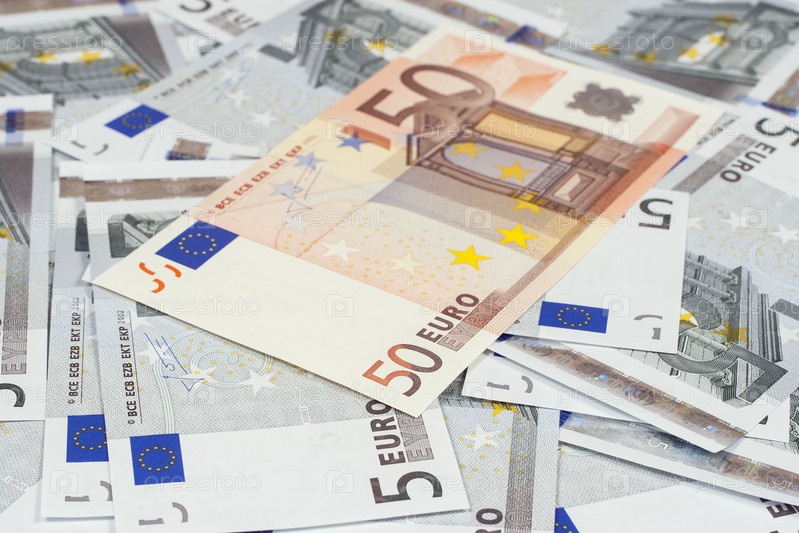 Несколько банкнот по пять и пятьдесят евро