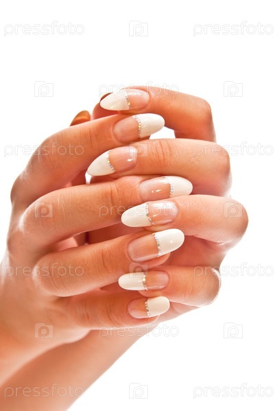 Женские руки с красивым маникюром на белом фоне