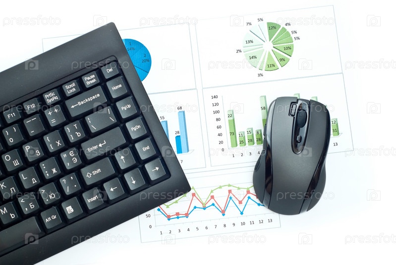 Компьютерная мышь и клавиатура с диаграммой на белом фоне