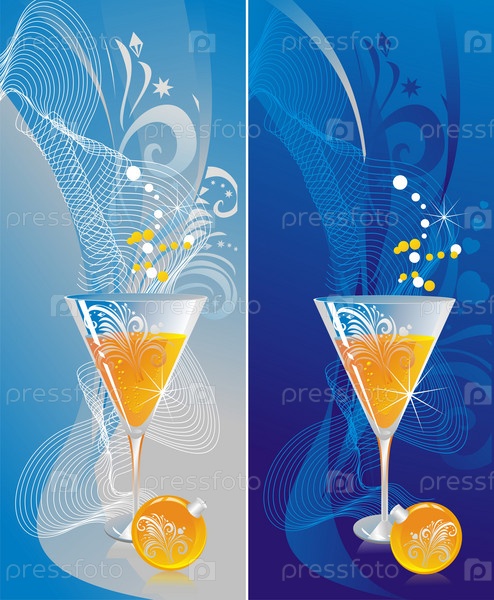Бокалы с шампанским и мандарины на зимнем фоне