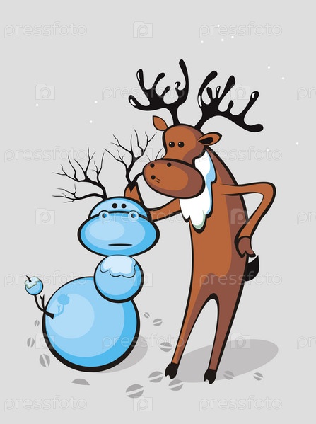 Рождественский олень и снеговик
