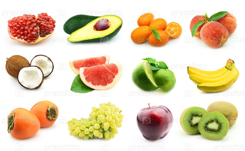 Коллекция фруктов на белом фоне