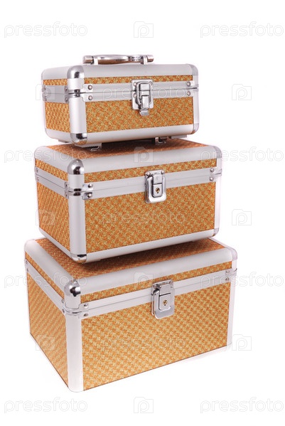 Набор кейсов разных размеров на белом фоне