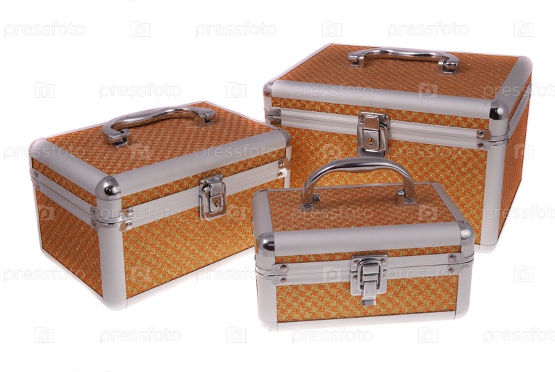 Кейсы крупным планом на белом фоне