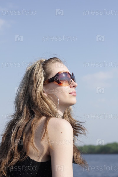 Молодая девушка в темных очках на природе