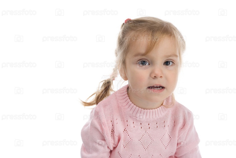 Портрет маленькой девочки в розовом свитере на белом фоне