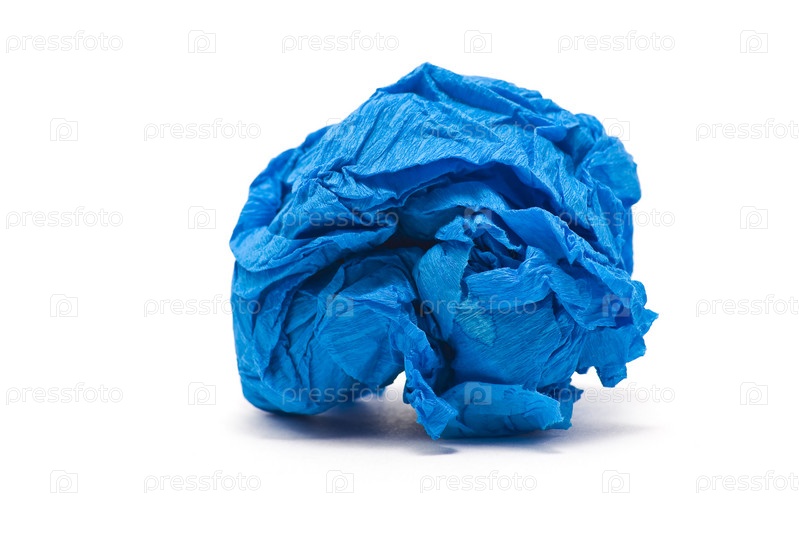 Смятая синяя салфетка на белом фоне