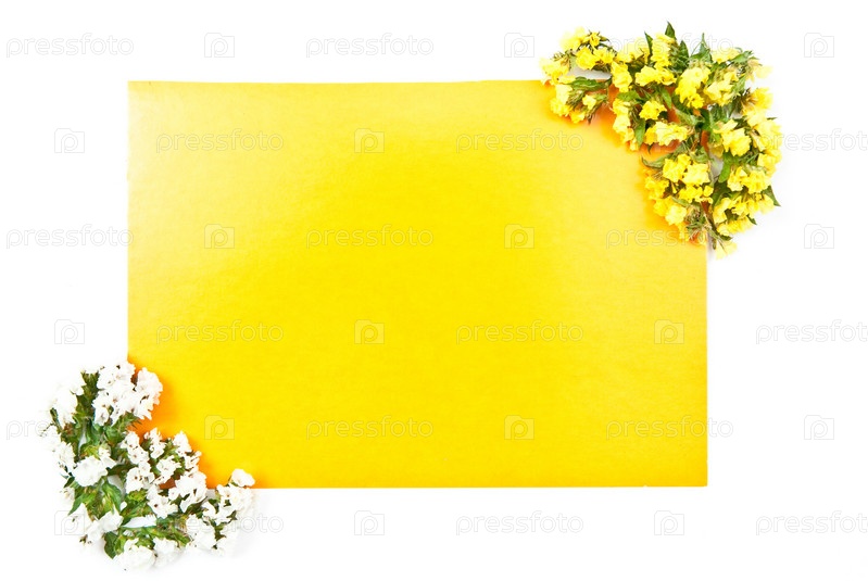 Желтая открытка с цветами на белом фоне