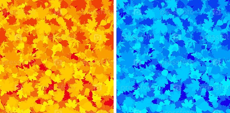 Нарисованные осенние листья в желтом и синем цвете