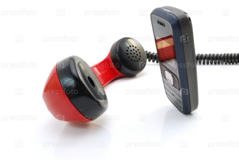 Старый телефон и мобильный на белом фоне